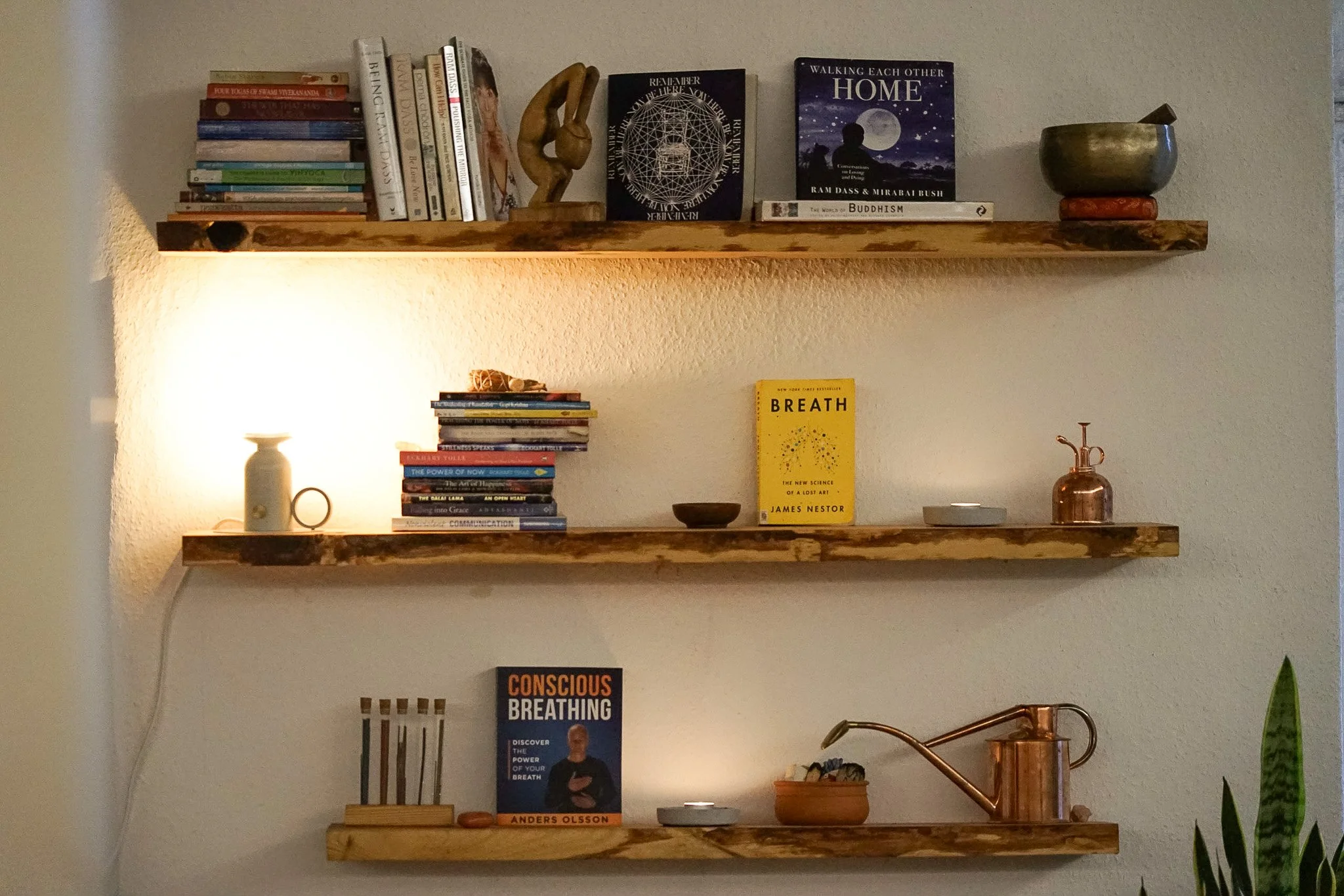 In unserem Studio ist es mit 10 hochwertigen Manduka Yogamatten, Polstern, Yogablöcken aus Holz und Kork, Gurten und Decken ausgestattet. Wir empfehlen dir, deine eigene Yogamatte mitzubringen, sofern du eine hast, da dies hygienischer ist und du auf der Matte aktiv sein kannst, die dir am besten gefällt. Ökologische, handgefertigte Yogamatten aus Baumwolle kannst du direkt bei uns im Studio erwerben!